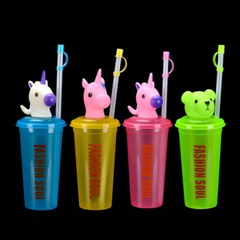 Taza luminosa de paja para niños y mascotas, vaso de plástico de 450ml con pajita de 18oz para fiesta